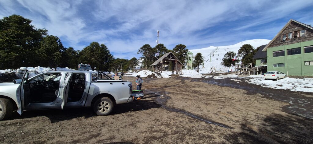 Seveda sem imel izdelan podroben idejni načrt našega smučanja a kot vedno so bili to računi brez krčmarja. Ko se je letalo ustavilo na pisti v Puerto monttu smo šele prav opazili deževne oblake, ki so  polzeli nad mesto z juga. Dva pickupa, ki smo jih prevzeli na letališču nista imela pokrova na kasonih. Še sreča, da je ostalo suho tisto popoldne. Ob pogledu na vremensko napoved je bilo hitro jasno, da se bo narejeni načrt začel podirati že naslednji dan. Osorno je eden od najbolj znanih smučarskih vulkan okoli Puerto Montta.« It’s always a tricky vulcano!« Je dejal Rodrigo, znanec in lokalni vodnik, »Go north…!«  Tako smo se naslednji dan res odpeljali v Pucon, nekaj sto kilometrov severneje. Čilski Chamonix leži ob vznožju morda najbolj znanega smučarskega vulkana v Čilu, Villarice. Lepo jezero v katerem odseva pravilno oblikovani, beli vulkan, je res skoraj kičasto. Mestece premore številne prijetne lokale, odlične restavracije in postopanje, sicer pod dežniki, z lahkoto prežene slabo voljo ob neugodnem vremenu. Rodrigo v vremenski napovedi opazi »window« in polni elana se naslednje jutro zapodimo po luknjasti cesti do majhnega smučišča ob vznožju vulkana.  »Kaj bi ta cesta naredila kakemu Renaultovem kombiju? Se naglas trepljam po rami ob modri odločitvi najema robustnih pickupov medtem, ko poskakujemo preko ogromnih lukenj na slabi cesti. »In kako bi se šele bunili slovenski smučarji, če bi bila takšna cesta pod Krvavec..?« doda nekdo.